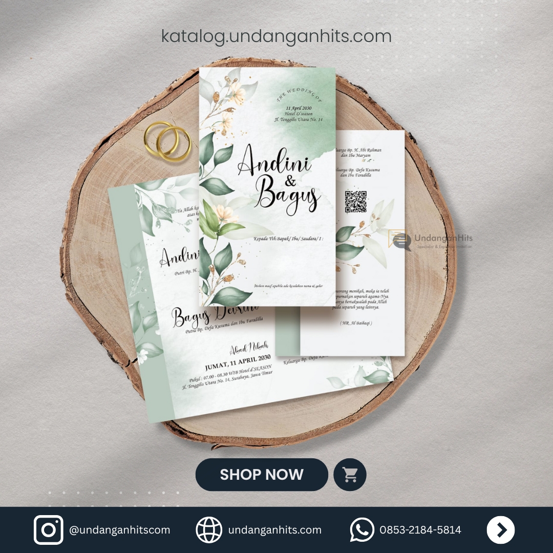 Undangan ini menyajikan sentuhan alami dengan desain elegan, memadukan elemen flora yang menawan dalam palet warna lembut.
