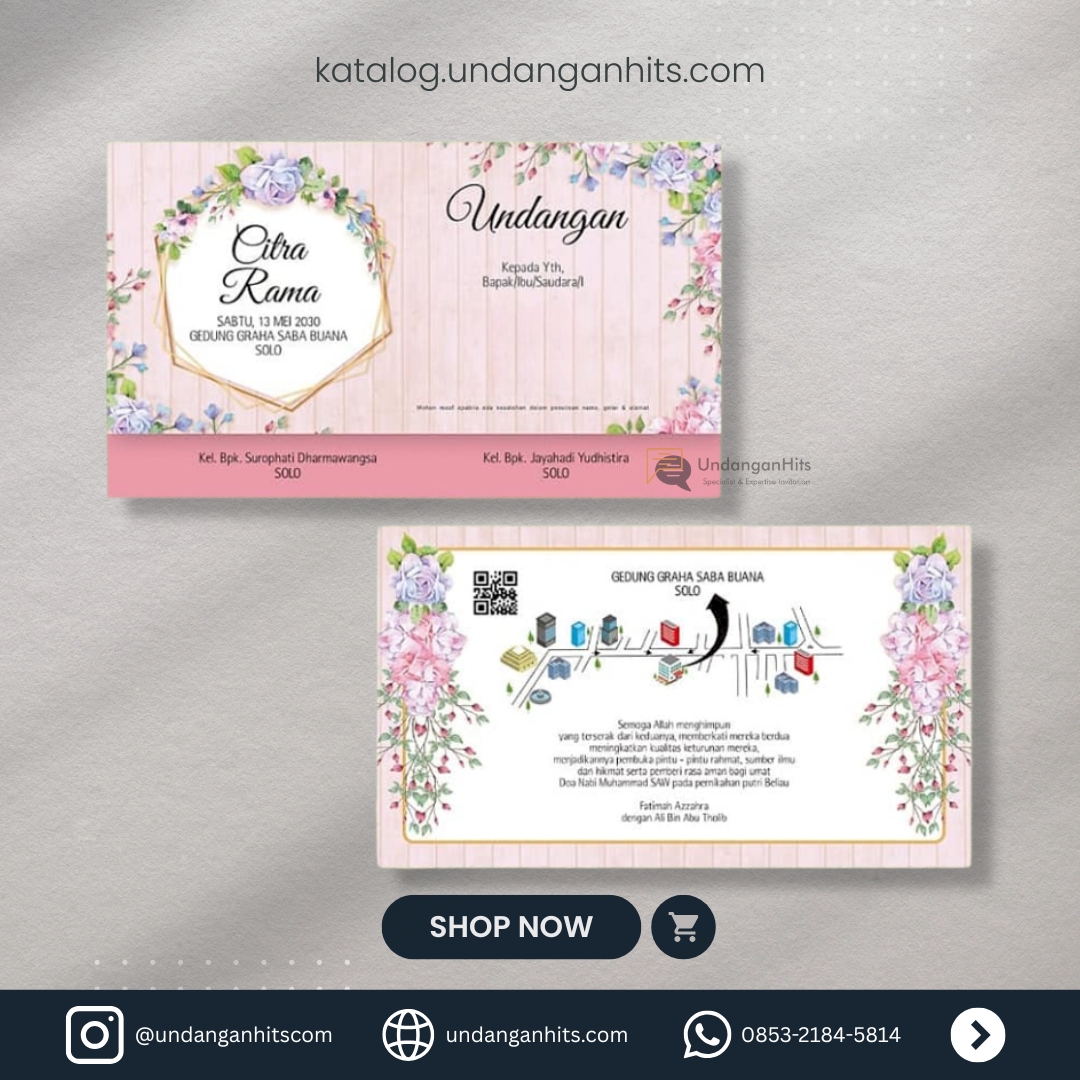 Undangan ini memancarkan keanggunan dengan desain floral yang memikat dan palet warna pastel yang menenangkan, cocok untuk momen istimewa Anda.