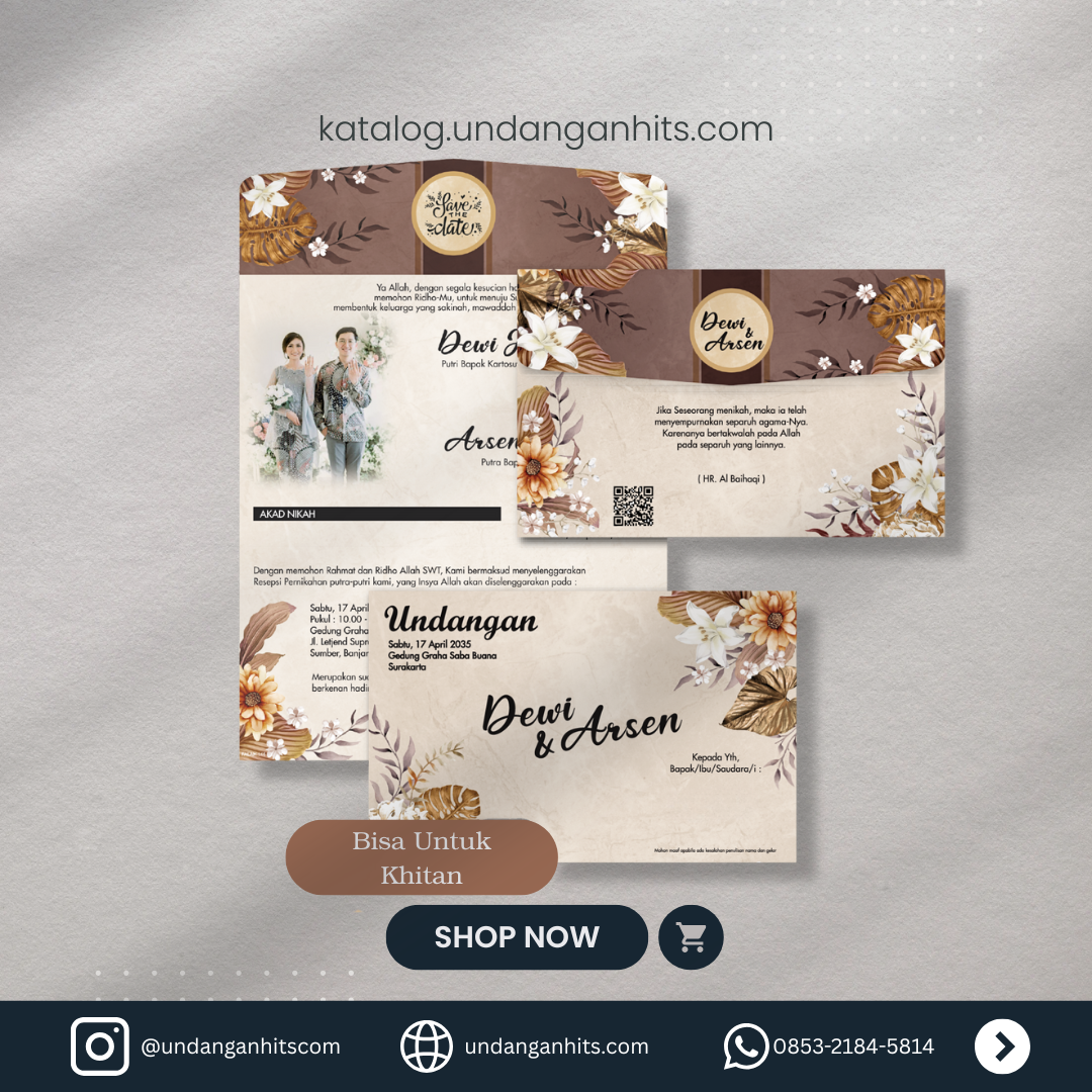 Undangan ini menggabungkan keanggunan tradisional Jawa dengan sentuhan modern, menampilkan ornamen gamelan dan bunga melati yang menawan.