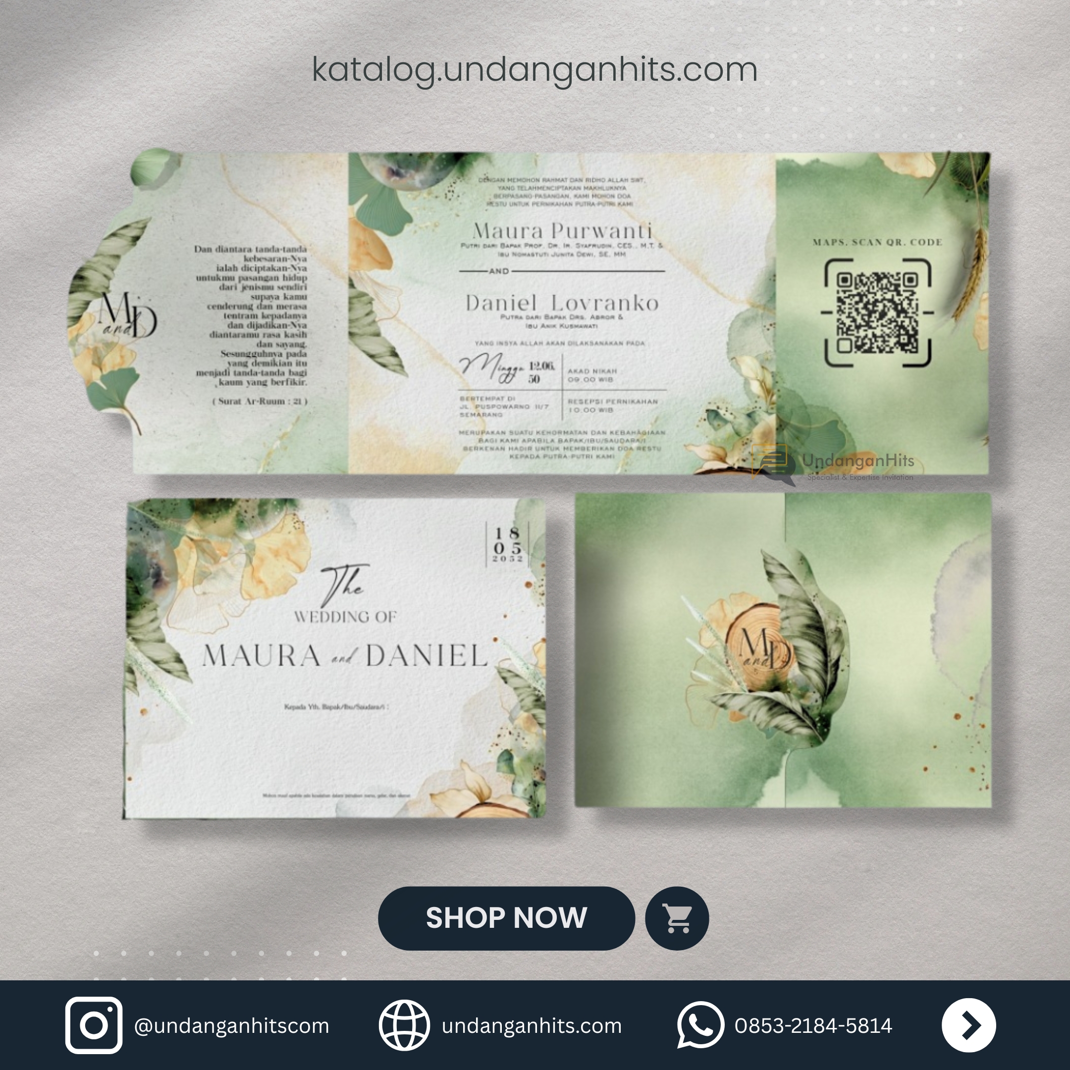 Undangan ini menggabungkan sentuhan elegan dengan motif botanikal yang memikat, menjadikannya pilihan sempurna untuk pernikahan modern.