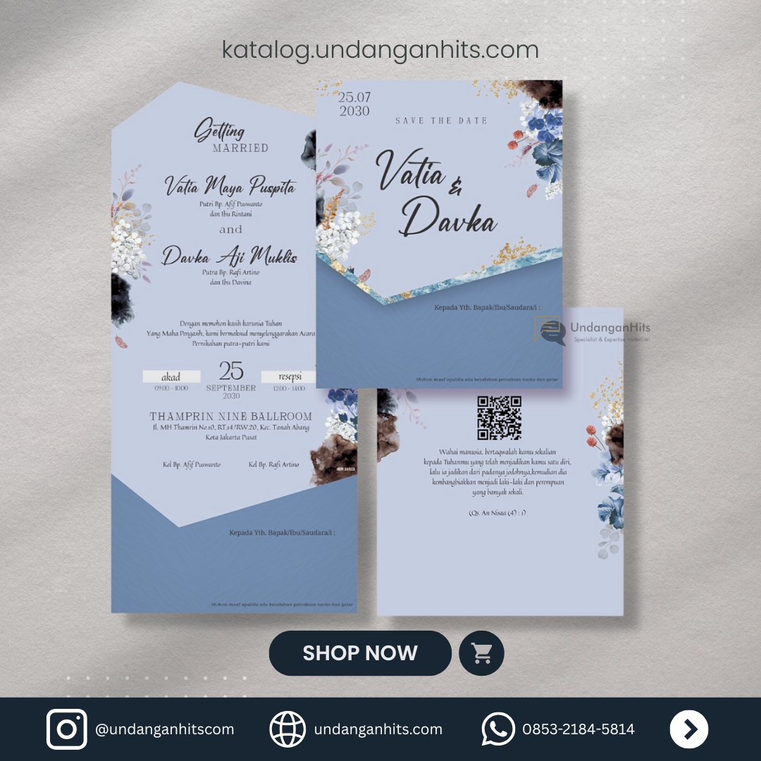 Undangan ini memancarkan kesegaran dengan desain botanical yang elegan, dipadu dengan warna-warna lembut yang menenangkan.