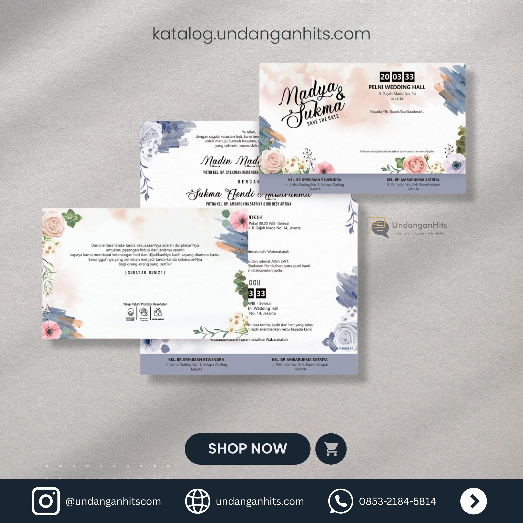 Undangan ini memadukan nuansa elegan dengan sentuhan floral yang segar, cocok untuk perayaan istimewa. Desainnya yang lembut dan romantis akan membuat tamu merasa istimewa.