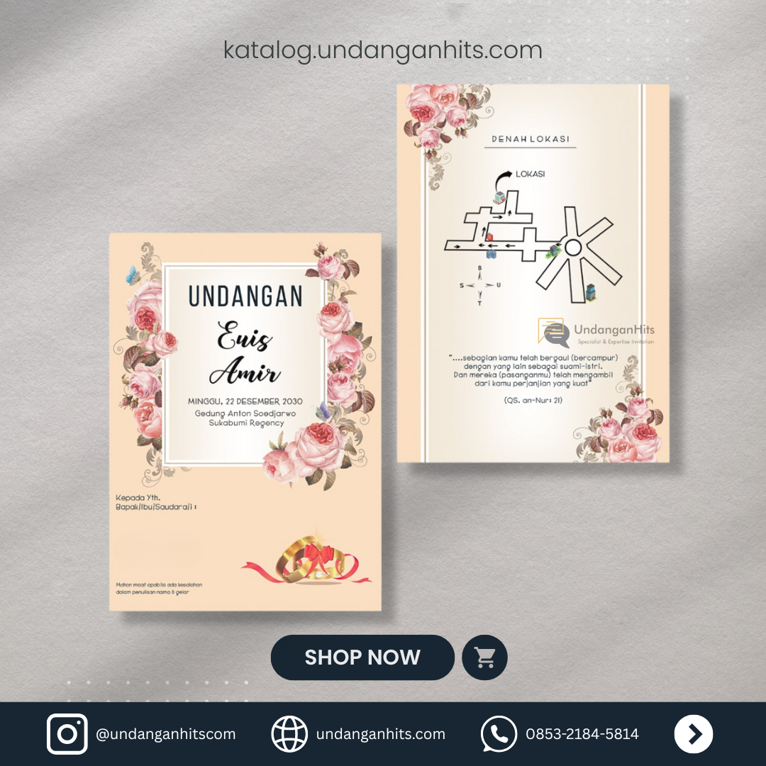 Undangan ini memukau dengan sentuhan elegan dari bunga mawar yang indah dan desain yang sederhana namun menawan.