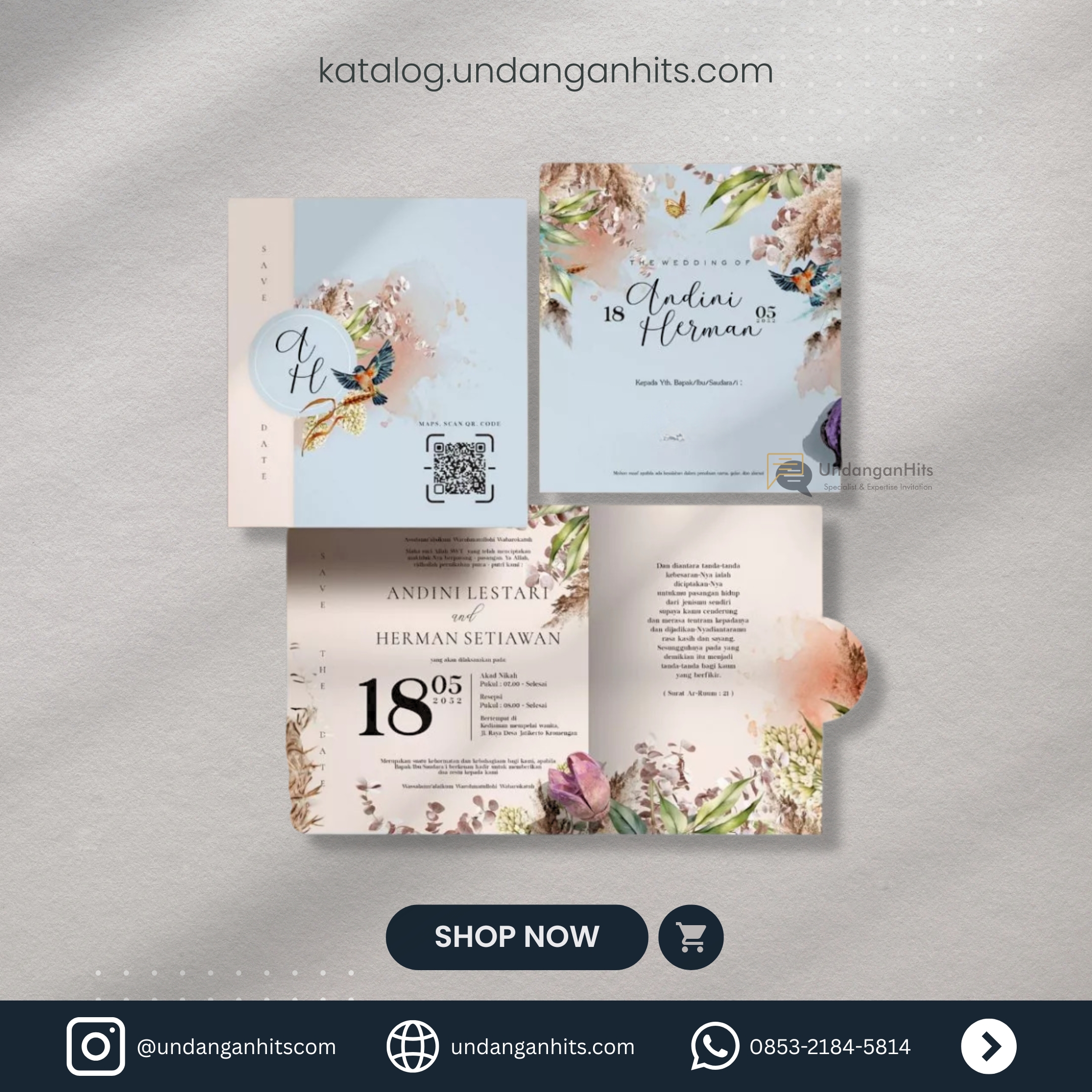 Undangan ini menggabungkan sentuhan elegan dengan motif botanikal yang memikat, menjadikannya pilihan sempurna untuk pernikahan modern.